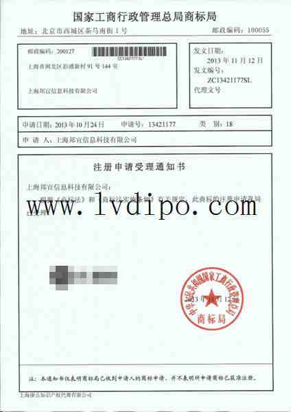 商標(biāo)受理通知書(shū)